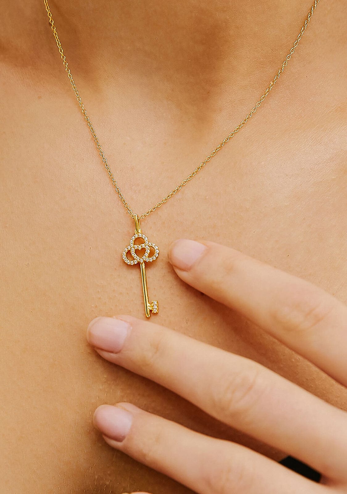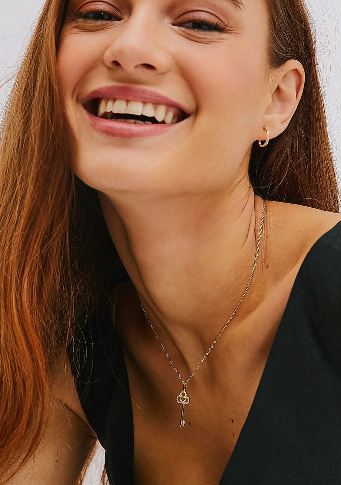 Der Ewig Halskette symbolisiert die Vereinigung jener Geschichten, die stattfinden und kein Ende haben. Ein Schlüssel, der mehr als ein für immer symbolisiert. Es repräsentiert die ewige Vereinigung. Es besteht aus 18 Karat Gold plattiert 925 Sterlingsilber und sorgfältig von Hand mit weißen Zirkonien verbunden. Der Schlüssel hat die perfekte Größe (2,5 cm), um mit anderen Halsketten kombiniert zu werden oder sie auf einzigartige und besondere Weise alleine zu tragen. Die Kette, ein dünnes und elegantes Modell, hat eine Länge von 38 cm mit der Möglichkeit, 4 cm länger zu werden. Darüber hinaus enthält es ein 6 -mm -Abzeichen mit dem Kalk -Logo auf dem Verschlusssystem. Denken Sie nicht zweimal nach, geben Sie sich ein Geschenk oder geben Sie es einer besonderen Person. Es ist an der Zeit, Ihre Geschichten freizuschalten und sie für immer zu halten.