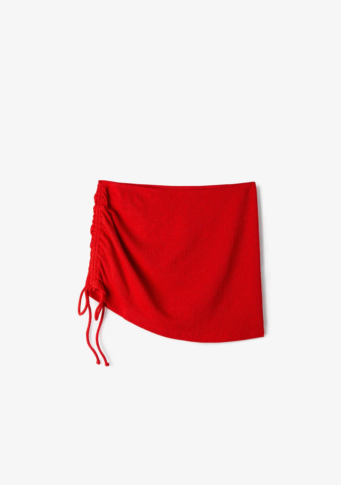 Red Sarong Rock. Details mit Bogen an der Seite sammeln. Mit goldenem rechteckigen Metallplattendetail mit Kalk -Logo.