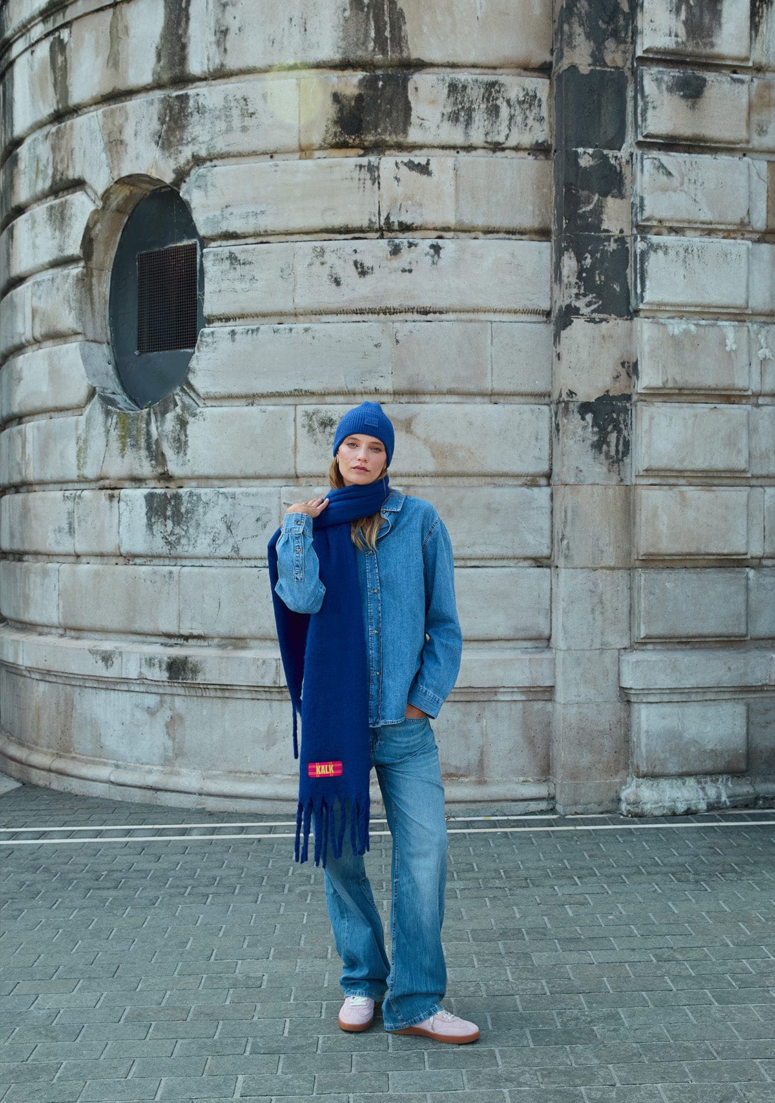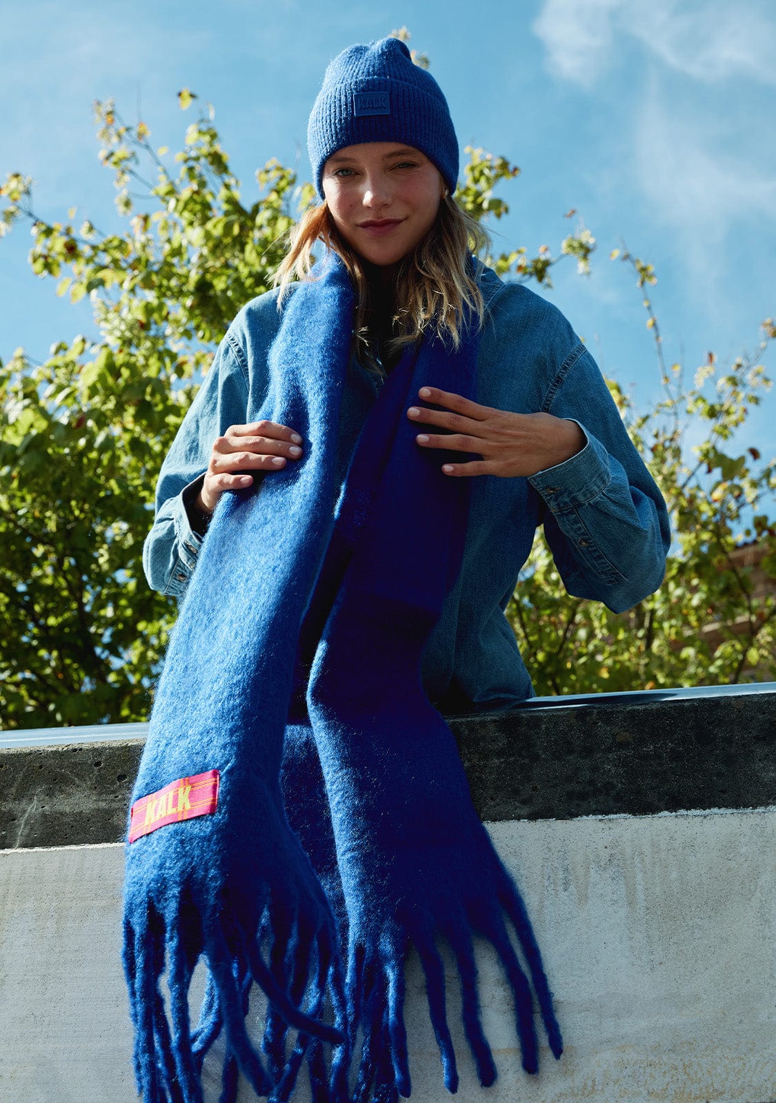 Kalk presenta el Beanie First Azul Kalk, un gorro azul de punto que es el toque vibrante que tu look de invierno necesita. Este gorro azul es ideal para quienes buscan un accesorio colorido y cómodo.