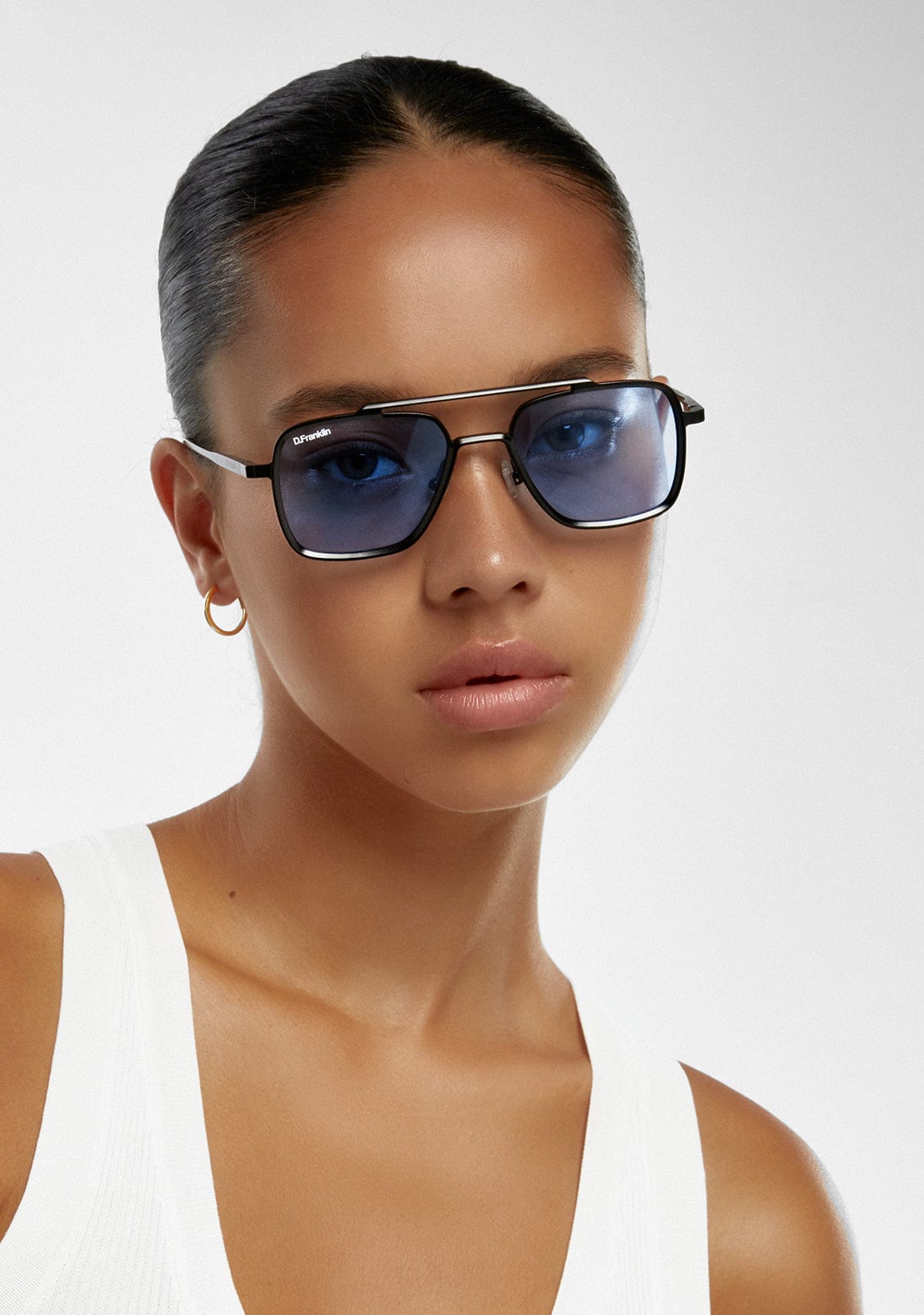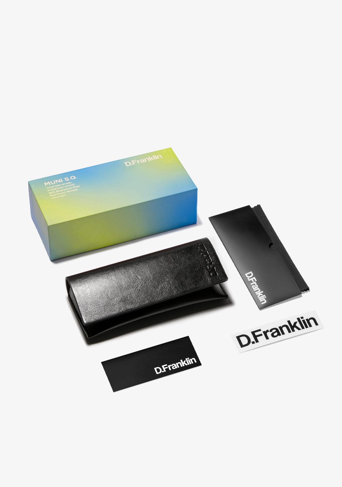 Gracias a su fabricación en aluminio, estas gafas son ultra ligeras. Sus lentes polarizadas en tono azul y su marco negro afianzan un diseño característico. Estas gafas de sol cuentan con emblema D.Franklin en la lente derecha y con logo metalizado en el lateral de las patillas. Presenta también una montura frontal de 140 mm y un ancho de lente de 50 mm, que se adapta a la mayoría de rostros. Las varillas tienen una longitud de 138 mm.