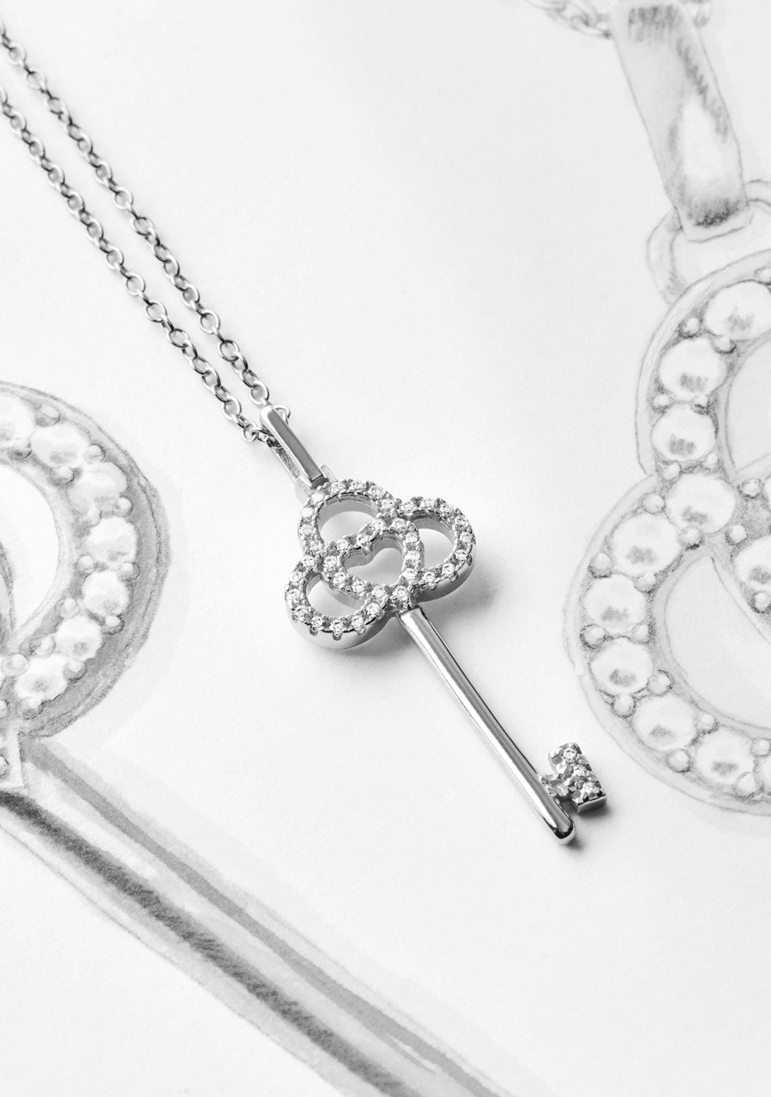 El collar Eternal simboliza la unión de aquellas historias que suceden y no tienen un final. Una llave que significa más que un para siempre. Significa una unión eterna. Está elaborado en plata de ley 925 y engarzado cuidadosamente a mano con circonitas blancas. La llave tiene el tamaño ideal para lucir combinada con otros collares o de manera única y especial, mide 2,5cm. La cadena, un modelo fino y elegante, tiene 38cm de largo con posibilidad de ampliar hasta 4 cm más. Además, cuenta con una chapa en la parte del cierre de 6mm con el símbolo de Kalk. No lo pienses, date un regalo o haz un regalo, porque es hora de desbloquear tus historias y que perduren para siempre.
