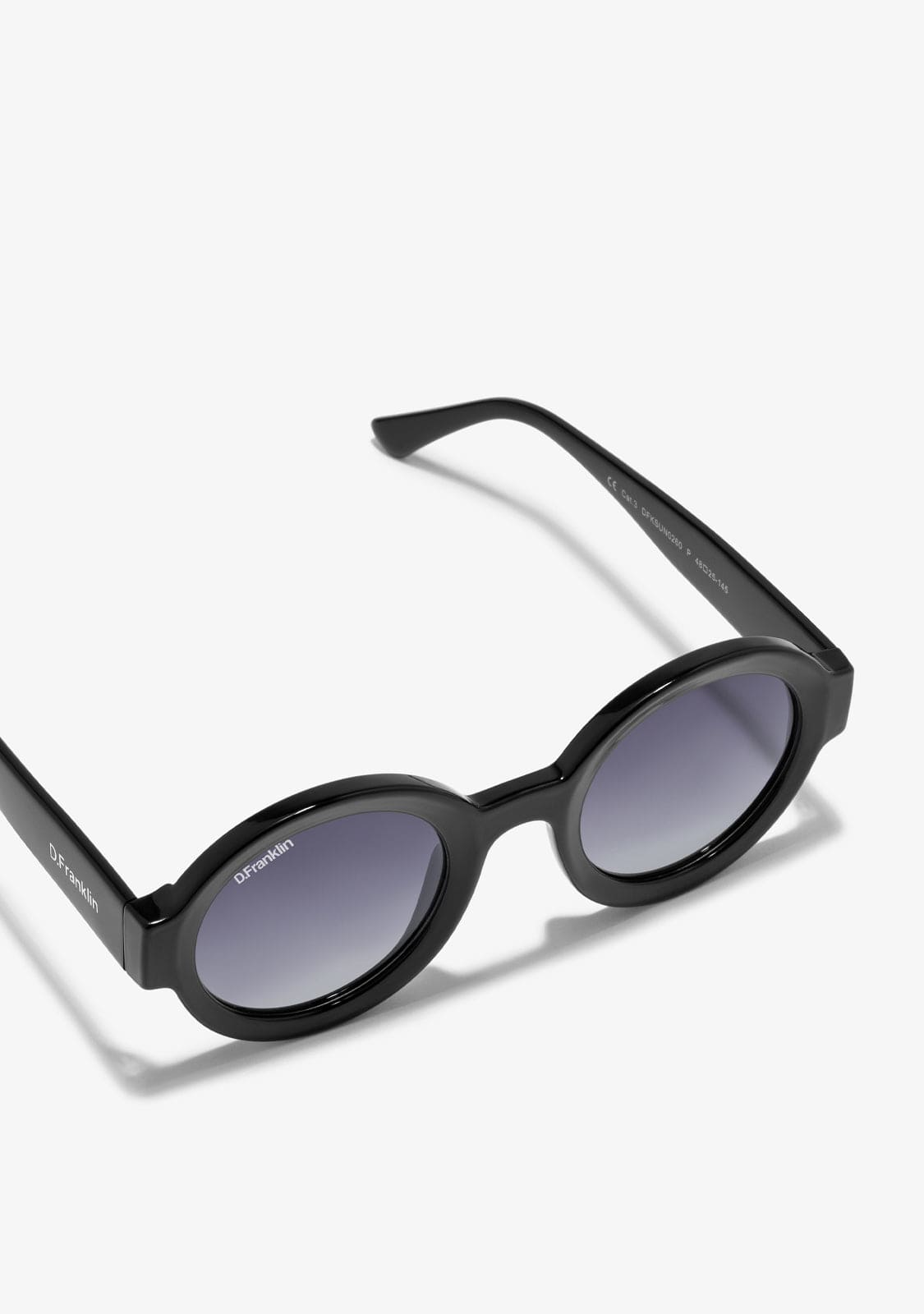 Le Modèle 913 Shiny Black / Gradient Smoke en collaboration avec D.Franklin se caractérise par ses branches en acétate, sa monture en TR90 et sa méthode de fabrication, soignée dans chacun de ses processus jusque dans les moindres détails. Les 913 Noir brillant / Fumée dégradée se distinguent par leurs formes rondes, leur finition noire totale sur la partie avant de la monture et sur les branches latérales, associées à des verres noirs dégradés. L'originalité est au rendez-vous.