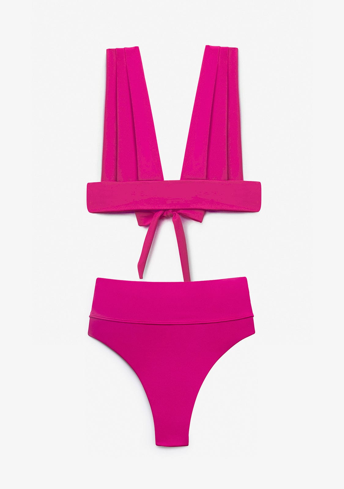 Haut de bikini Fucshia avec un décolleté en V et de larges bretelles. Sans armature, sans mousse à l'intérieur. Fermeture réglable par laçage pour un ajustement parfait.