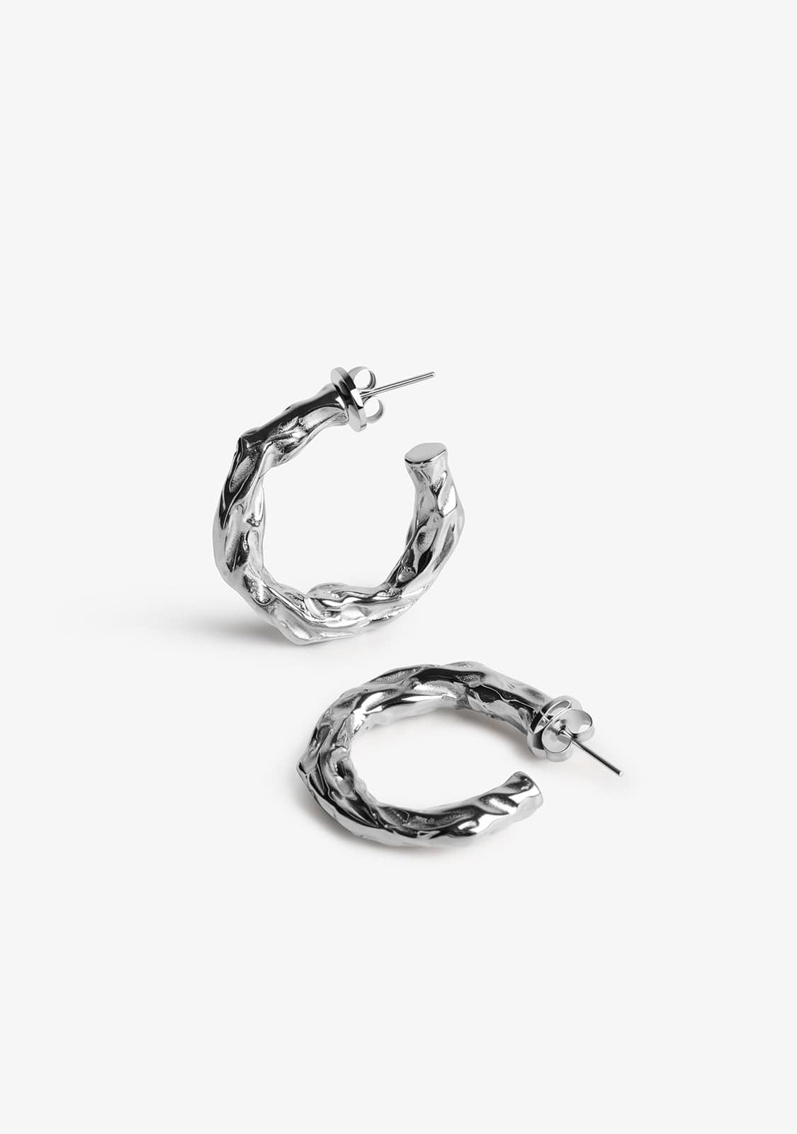 Cerceaux avec design tressé en couleur argentée. Fermoir à noix.