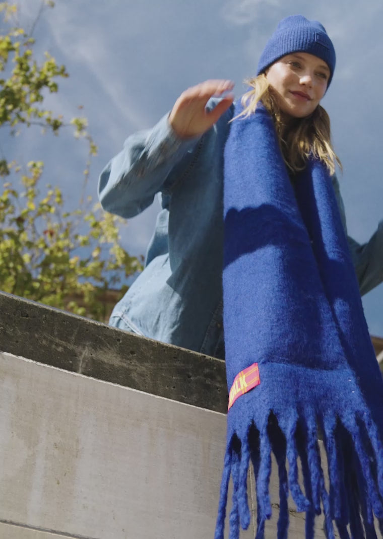 Kalk présente le nouveau Accessoires d'hiver Collection avec designs exclusifs. Le Écharpe bleue des femmes est le toucher audacieux que vos tenues hivernales manquaient.