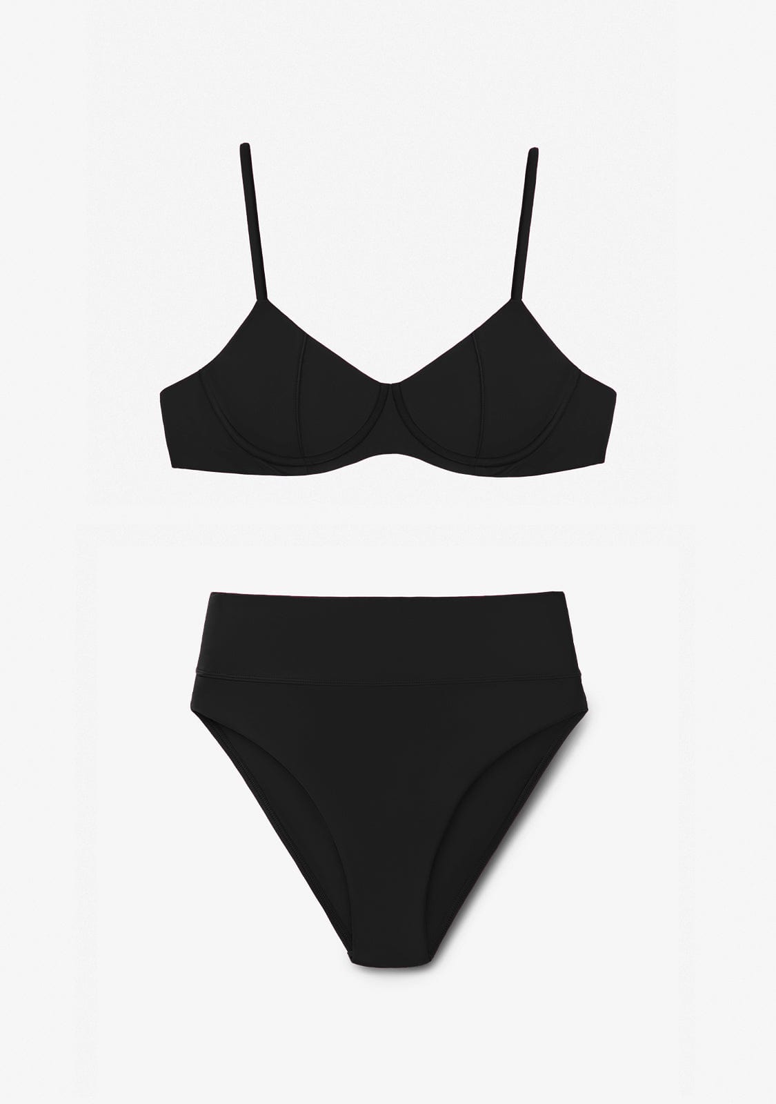 Top bikini nero a balconcino. Con ferretto e schiuma rimovibile. Spalline regolabili. Chiusura in metallo.