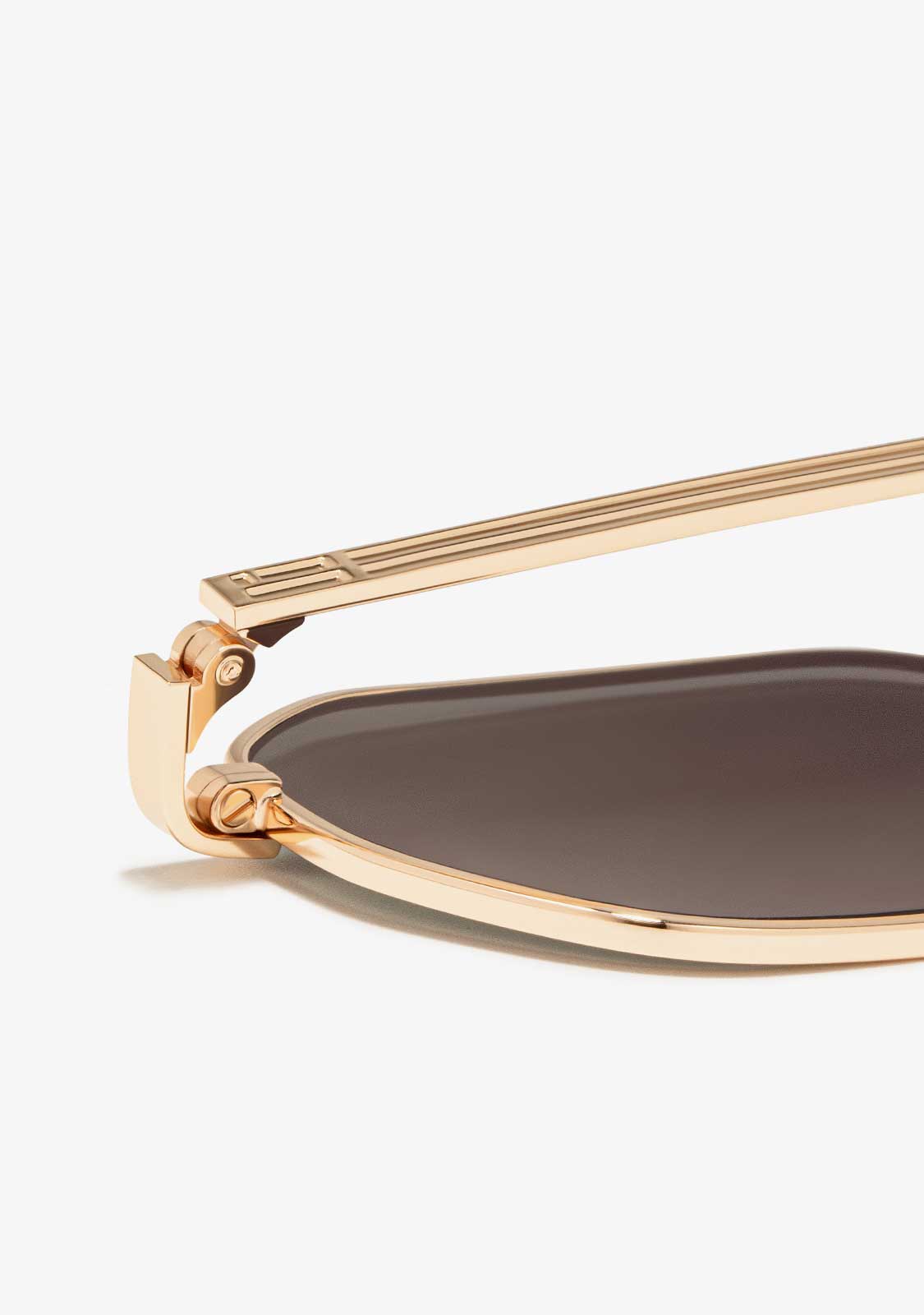 Il design Square Legacy si distingue per una finitura metallica e un’estetica esagonale. La montatura dorata è abbinata a lenti fumé antiriflesso che permettono una visione sottile e valorizzano i tratti del viso. La parte frontale misura 141 mm, la larghezza delle lenti è di 54 mm e le aste sono lunghe 140 mm. Un pezzo retrò ma minimalista per completare qualsiasi outfit.