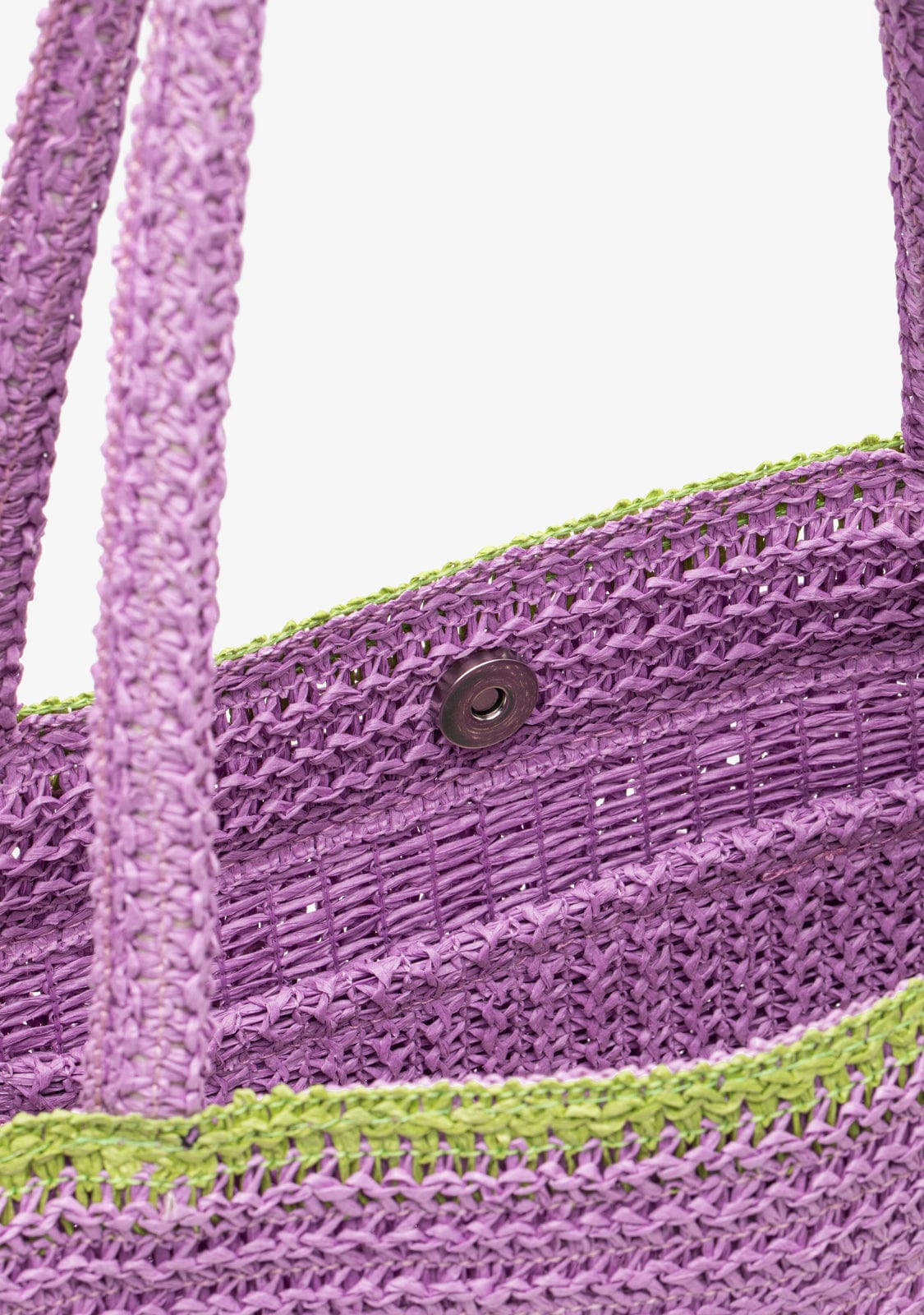 This beach bag has it all: lightweight woven body, comfy handles, and bold vibes from sunrise to sunset. The mix of lilac, lime green and hot pink makes a statement, while the tassel adds a fun little twist. Plus, the magnetic closure keeps your essentials safe (and stylish). Wear it with your bikini, a flowy dress or anything you want—what matters is that you're carrying it.