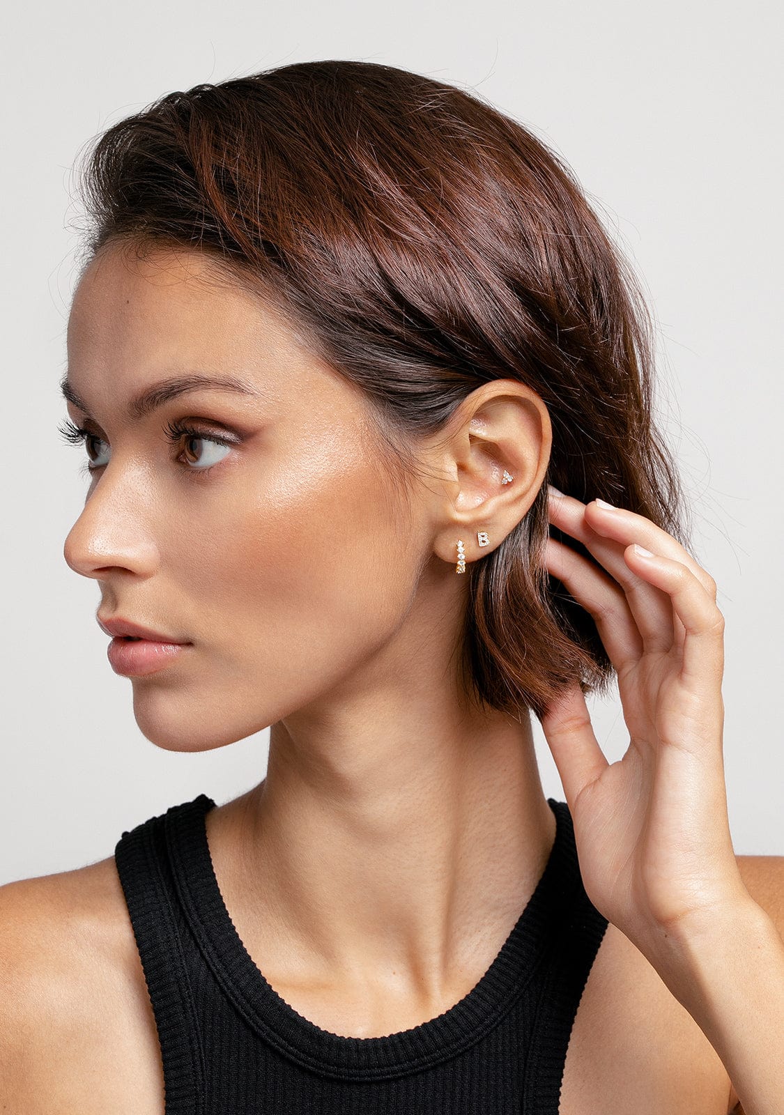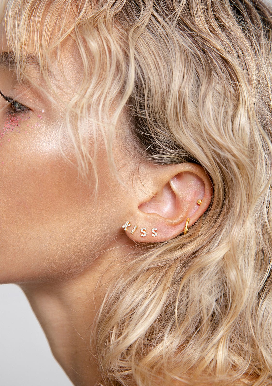 The Initial Piercing Gold is part of the of Kalk’s Initials Collection. The personal meaning of each letter is the essence of the Initials collection. Behind each initial there is a name, there is a story. With this collection you can show off or give away that special initial. The format of the initials can be in pendant or piercing, with zircons or in a smooth finish. With the Initials collection you will bring a unique touch to your looks.