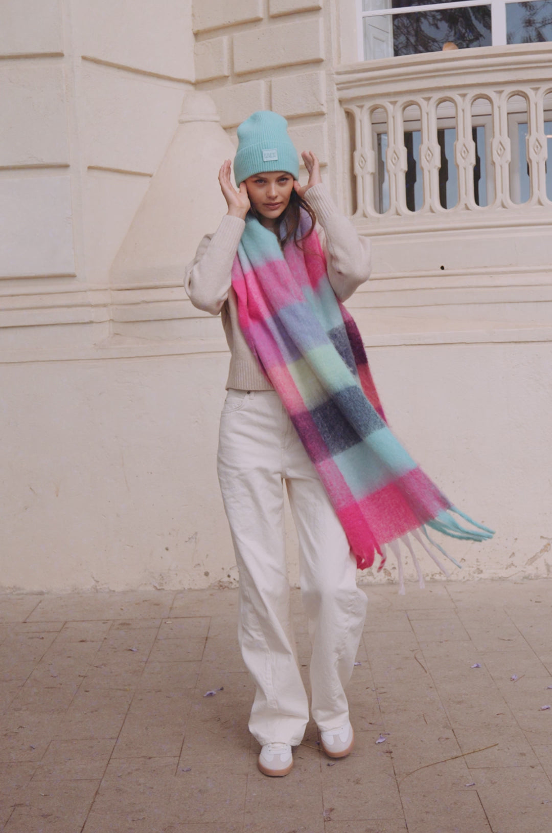 Kalk presents the Scarf Vibrant Mint Kalk, a mint green scarf that will add a fresh and vibrant touch to your look. This mint green scarf is perfect for women looking for a comfortable and stylish piece for the winter.