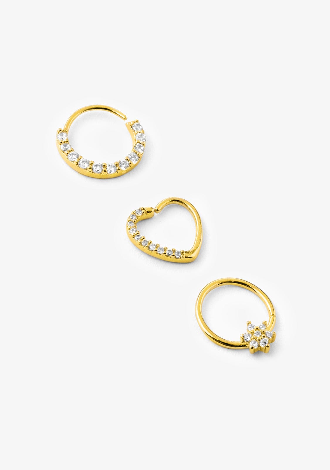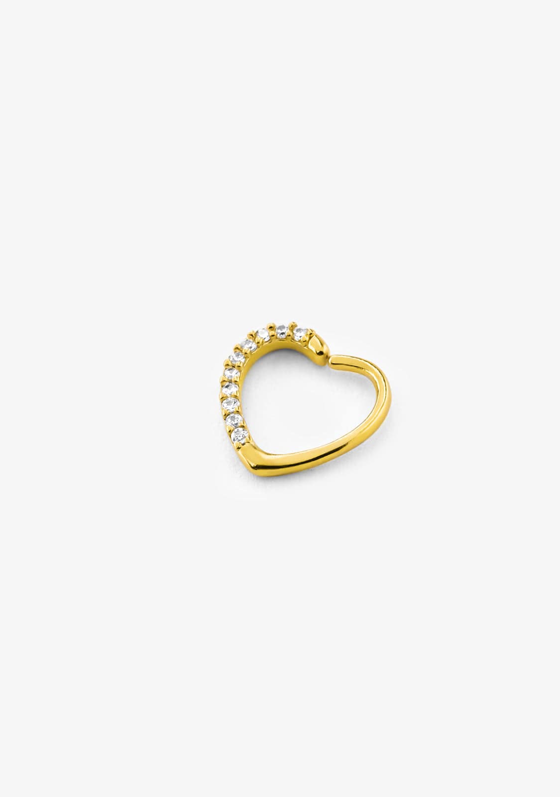 O Piercing de argola Coração Ouro faz parte de Piercing! A nova coleção cápsula de Piercings KALK é perfeita para combinar com o seu look de orelha. Desenhos que podem ser usados como piercing em hélice ou contra-hélice, piercing no dente, piercing no tragus ou contra-tragus, piercing na concha, piercing no cotovelo... Escolha os seus favoritos, crie as suas próprias combinações e Piercing!