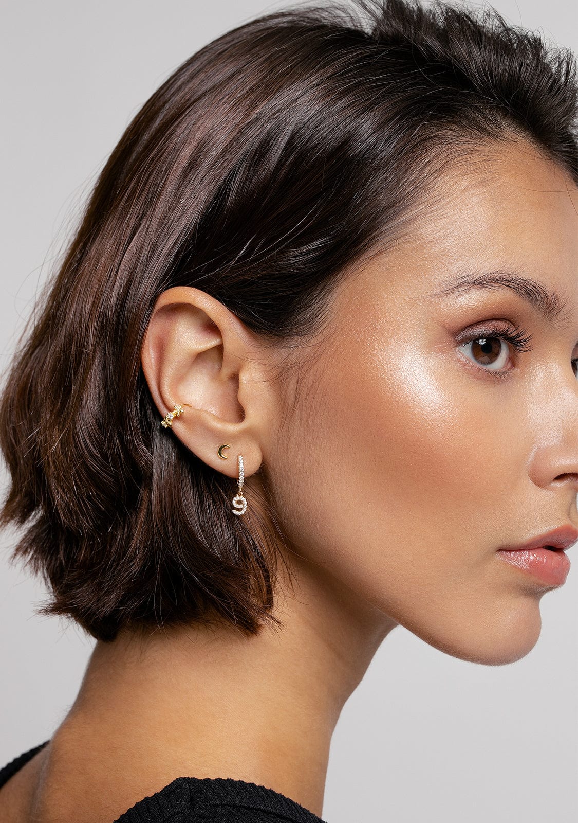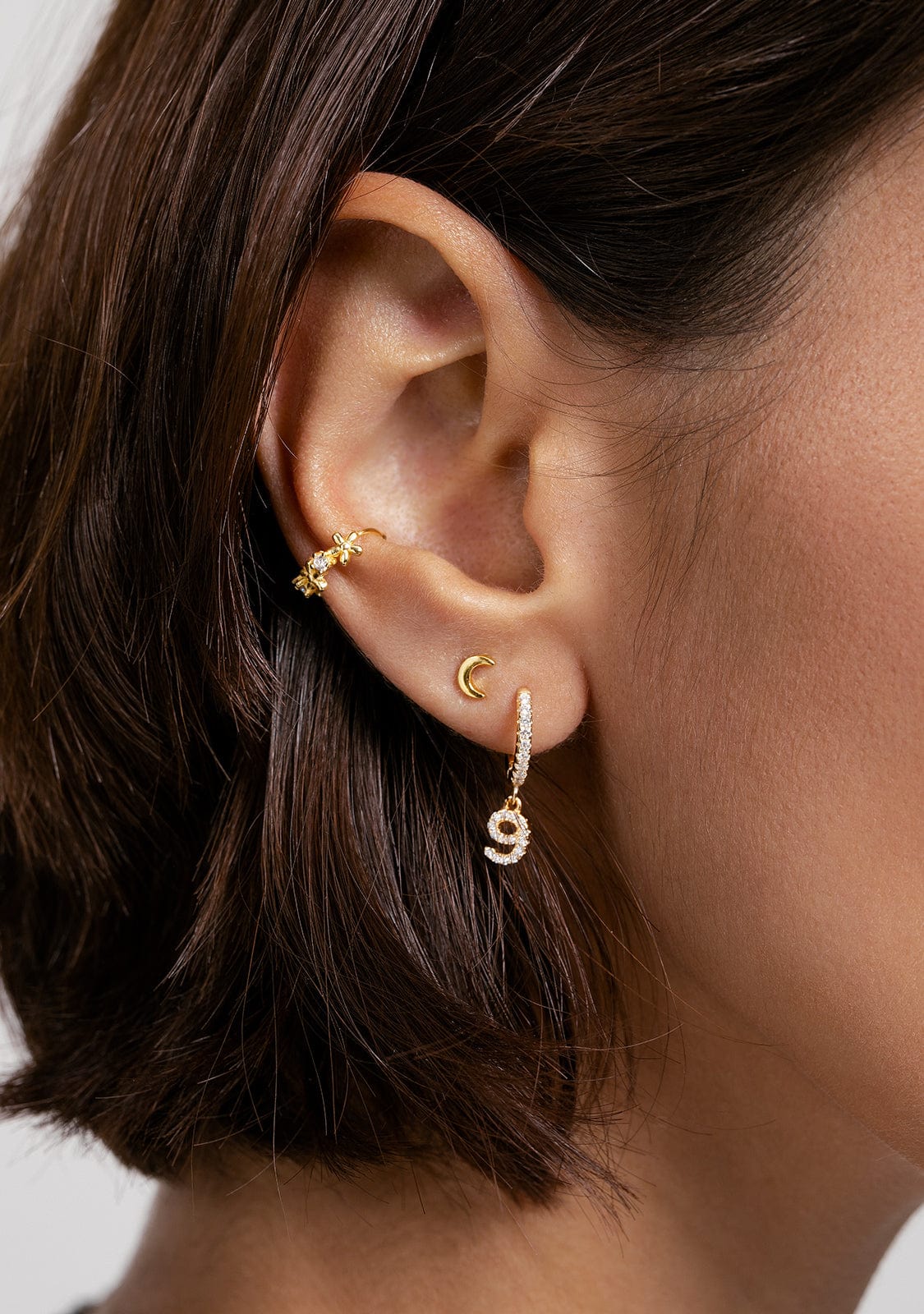 O Nove piercing de ouro faz parte do de Kalk Coleção Essentials. Há jóias que nunca devem estar faltando na caixa de jóias de uma mulher. A coleção Essentials inclui todos os modelos de pingentes, pulseiras, anéis, brincos e piercings, perfeitos para uso diário. Ou para todos aqueles que desejam dar um toque chique à sua aparência natural e simples. Perfeito para aqueles dias em que os mais básicos, acabam sendo os mais modernos.